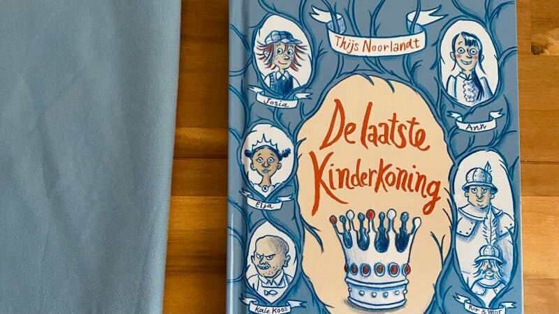 Het debuut van Thijs Noorlandt. Ik had nog niets gezien of gehoord over dit boek totdat ik het omslag voorbij zag komen op de socials van Marja Meijer, de illustratrice. En toen raakte ik geïnteresseerd. Het bijzondere omslag met weinig kleur: enkel blauw, oranje en wit, maakt nieuwsgierig. De titel is ook intrigerend. Want wat is een Kinderkoning? En waarom is het de laatste?