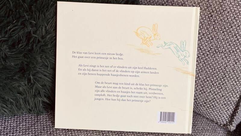 Maar als Levi aan de beurt is, schrikt hij. Plotseling zijn alle vlinders en haasjes het raam uit, verdwenen, ontploft. Het liedje gaat toch niet over hem? Hij is een jongen. Hoe kan hij dan het prinsesje zijn? (flaptekst)