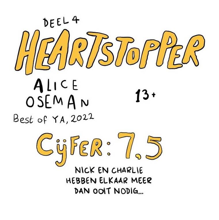 De Heartstopper-reeks is tot nu toe een onderhoudende reeks die nergens verslapt en je blijft raken. Volgend jaar komt het vijfde en laatste deel uit. Ik kan niet wachten.